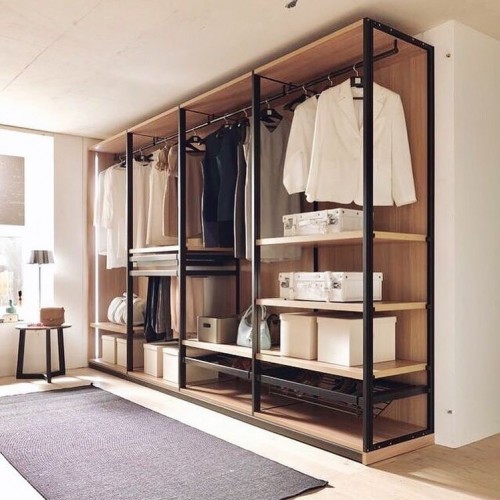 Предлагаем разные виды гардеробных систем: прямые, угловые и П-образные; открытые и закрытые; встроенные и отдельностоящие. В открытых системах внутреннее пространство гардероба не изолировано от основной комнаты, в закрытом варианте предусмотрены раздвижные двери, как у привычного шкафа купе. Конфигурация гардеробной подбирается в зависимости от формы комнаты. Система хранения может быть стационарной или модульной — с возможностью перестановки полок, корзин и ящиков по типу конструктора.
